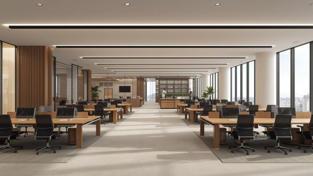Ofis ve ortak alanlar için detaylı aydınlatma yerleşim planları